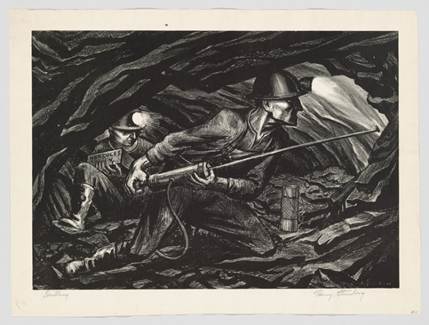 Harry Sternberg (American, 1904 – 2001). Coal Miners. ca. 1936-1937. Crayon and aquatint on paper. Image courtesy of the Amon Carter Museum of American Art, Fort Worth, Texas. 1998.125. Copyright Estate of Harry Sternberg.