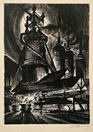Harry Sternberg (American, 1904 – 2002). Steel Town, 1937. Lithograph. Image courtesy of the Block Museum, Northwestern University. 1995.37.